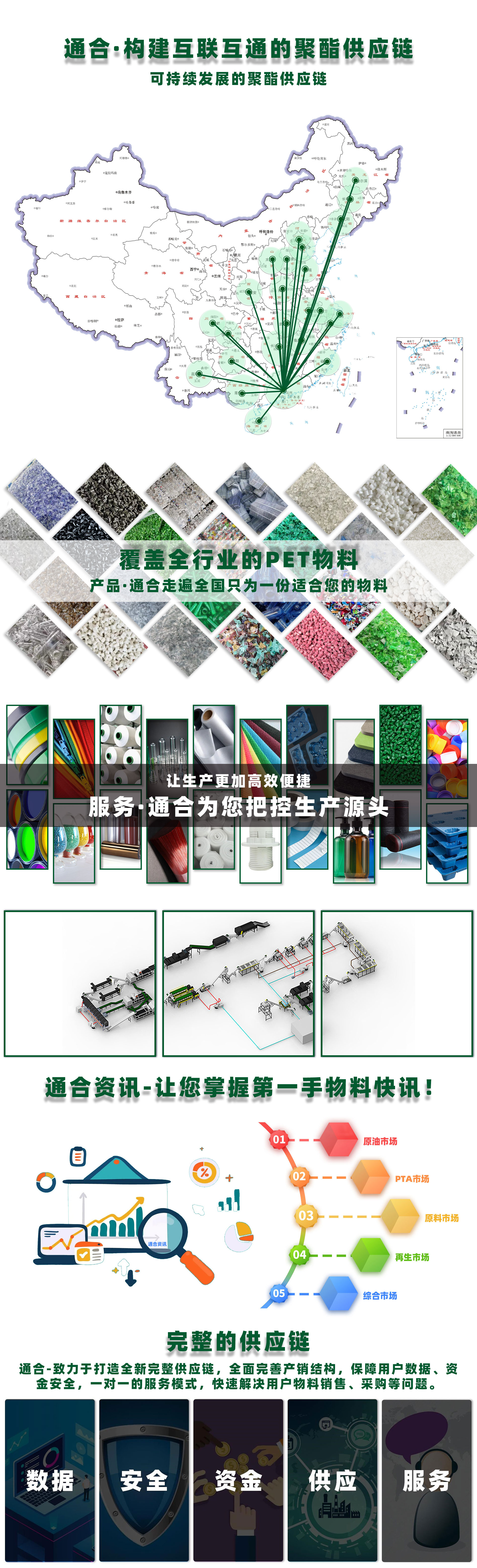 覆蓋全行業(yè)PET原料與再生PET產(chǎn)品。 產(chǎn)品服務(wù)區(qū)域達(dá)到全國21個省市,走遍全國給您奉上最合適您的答卷。